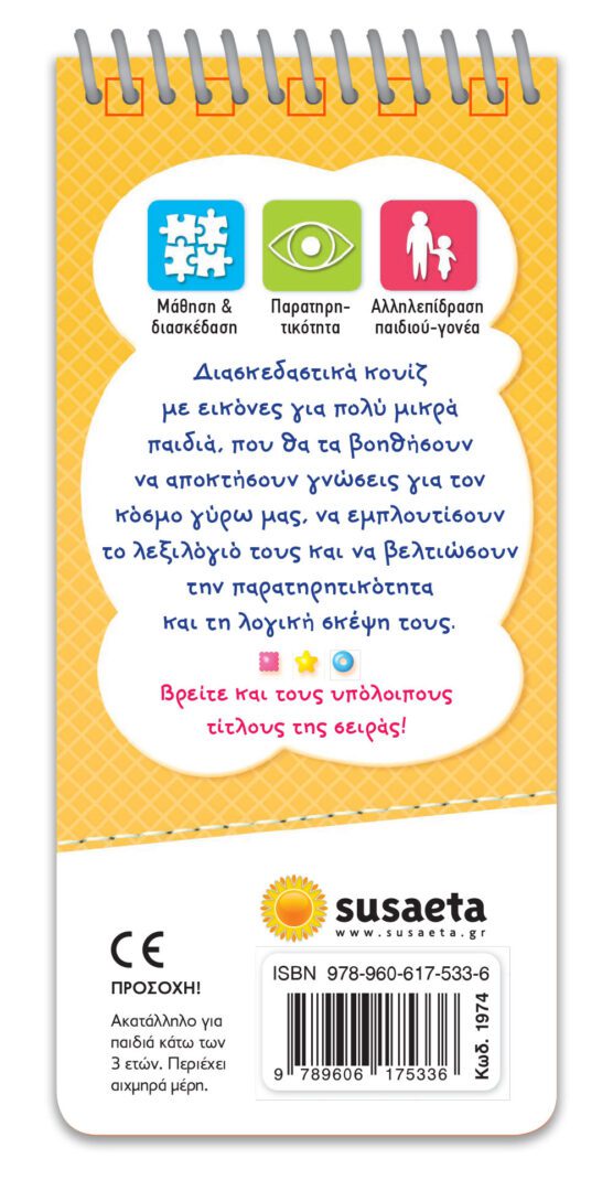 Διασκεδαστικά κουίζ µε εικόνες για πολύ µικρά παιδιά, που θα τα βοηθήσουν να αποκτήσουν γνώσεις για τον κόσµο γύρω µας, να εµπλουτίσουν το λεξιλόγιό τους και να βελτιώσουν την παρατηρητικότητα και τη λογική σκέψη τους. Διασκεδαστικά κουίζ µε εικόνες για πολύ µικρά παιδιά, που θα τα βοηθήσουν να αποκτήσουν γνώσεις για τον κόσµο γύρω µας, να εµπλουτίσουν το λεξιλόγιό τους και να βελτιώσουν την παρατηρητικότητα και τη λογική σκέψη τους.