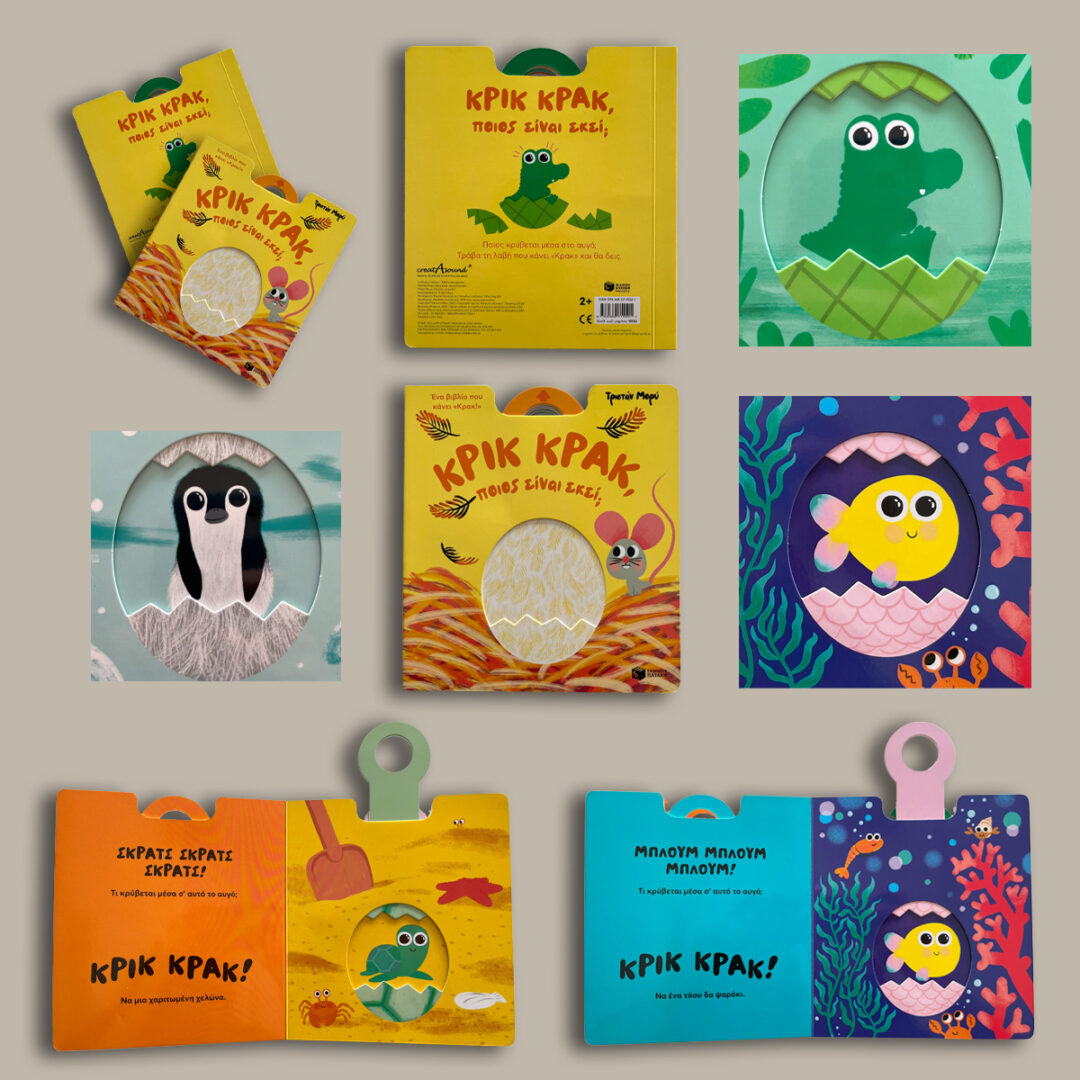Ένα βιβλίο-έκπληξη με λαβή που τραβιέται, για να ανακαλύψετε τα μωρά ζώα που γεννιούνται μέσα σε αυγά.
