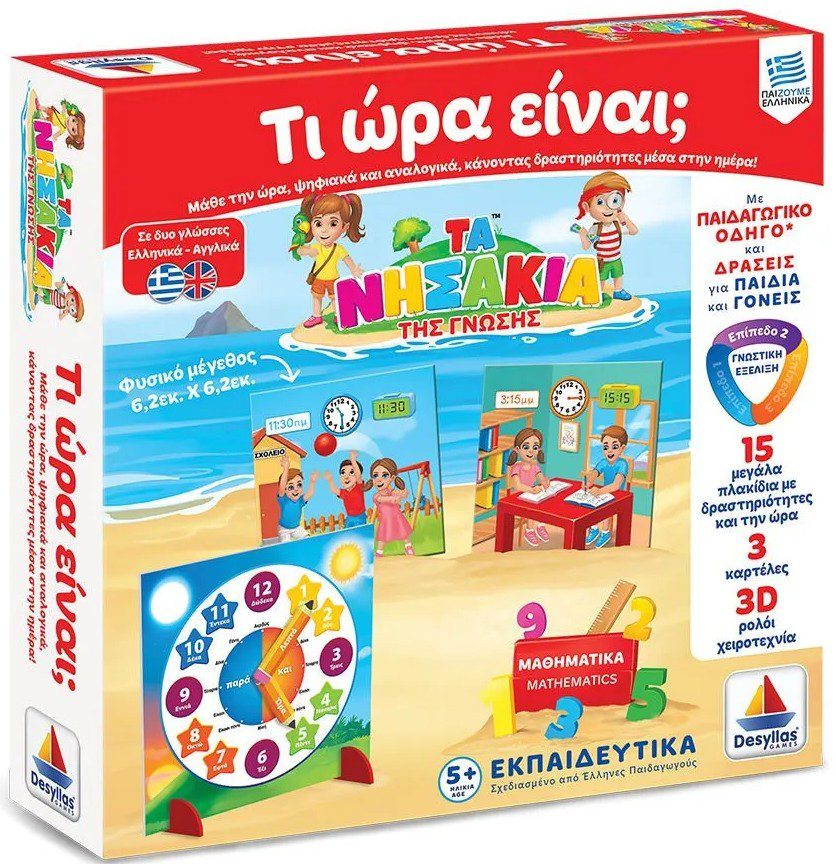 Πρωί, µεσηµέρι και βράδυ. Τι ώρα πάµε στο σχολείο; Τι ώρα παίζουµε έξω; Ξέρεις να διαβάζεις την ώρα σε αναλογικό και σε ψηφιακό ρολόι; Μέσα από το παιχνίδι τα παιδιά αρχίζουν να διακρίνουν τις χρονικές στιγµές της ηµέρας, χρησιµοποιώντας το 3D ρολόι του παιχνιδιού!