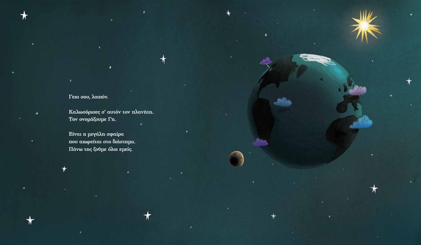 Γεια σου λοιπόν! Καλωσόρισες σ’ αυτόν τον πλανήτη. Τον ονομάζουμε Γη. Ο κόσμος που ζούμε είναι ένας τόπος θαυμαστός, ειδικά αν έχεις μόλις βρεθεί σ’ αυτόν. Φαντάζομαι πως θα ’χεις ένα σωρό απορίες στο μυαλουδάκι σου, γι’ αυτό έλα να εξερευνήσουμε από τι είναι φτιαγμένος ο πλανήτης μας και πώς ζούμε σε αυτόν.