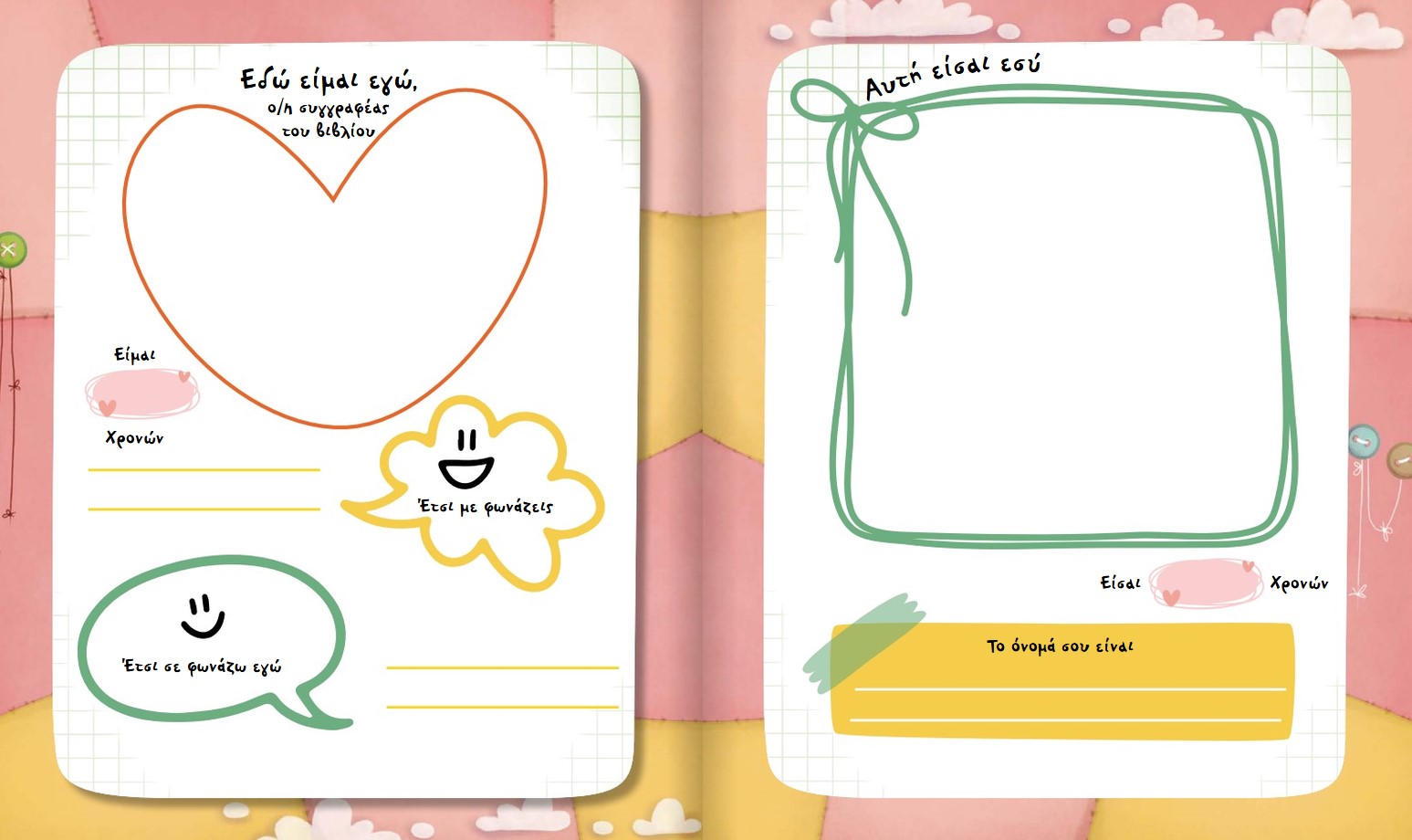 Όσα νιώθω για σένα είναι δύσκολο να χωρέσουν σε ένα βιβλίο. Επειδή όμως θέλω να τα μοιραστώ μαζί σου, τα κατάφερα! Σου χαρίζω αυτό το βιβλίο για να σου εκφράσω τα συναισθήματά μου, τις σκέψεις μου, να σου θυμίσω τις όμορφες στιγμές μας. Στις σελίδες του έκανα πολύχρωμες ζωγραφιές, σου έγραψα μηνύματα γεμάτα αγάπη, κόλλησα τις φωτογραφίες μας και πέρασα υπέροχα γιατί σκεφτόμουν διαρκώς εσένα, την καλύτερη μαμά του κόσμου!