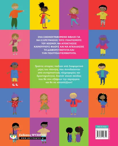 ΕΝΑ ΕΙΚΟΝΟΓΡΑΦΗΜΕΝΟ ΒΙΒΛΙΟ ΓΙΑ ΝΑ ΕΞΕΡΕΥΝΗΣΕΙΣ ΤΟΥΣ ΠΟΛΙΤΙΣΜΟΥΣ ΤΟΥ ΚΟΣΜΟΥ, ΝΑ ΑΠΟΚΤΗΣΕΙΣ ΚΑΙΝΟΥΡΙΟΥΣ ΦΙΛΟΥΣ ΚΑΙ ΝΑ ΑΓΚΑΛΙΑΣΕΙΣ ΤΗ ΔΙΑΦΟΡΕΤΙΚΟΤΗΤΑ ΚΑΙ ΤΗΝ ΠΟΛΥΠΟΛΙΤΙΣΜΙΚΟΤΗΤΑ. Τριάντα ιστορίες παιδιών από διαφορετικά μέρη του πλανήτη, που συνοδεύονται από συναρπαστικές πληροφορίες και δραστηριότητες. Εκατόν είκοσι σελίδες που θα σου εξάψουν την περιέργεια και θα σε καταπλήξουν!