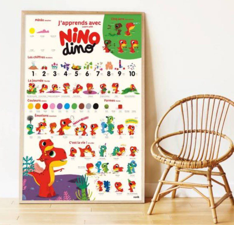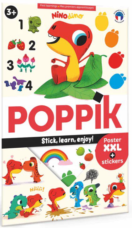 Ξεδιπλώστε το μεγάλο πόστερ, κολλήστε τα 60 επανατοποθετούμενα αυτοκόλλητα και ανακαλύψτε τον κόσμο της γνώσης με τον δεινοσαυράκο Nino.