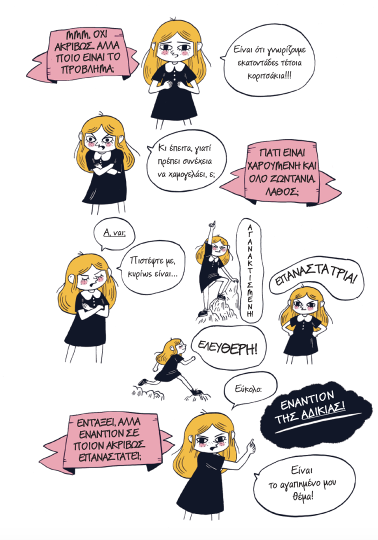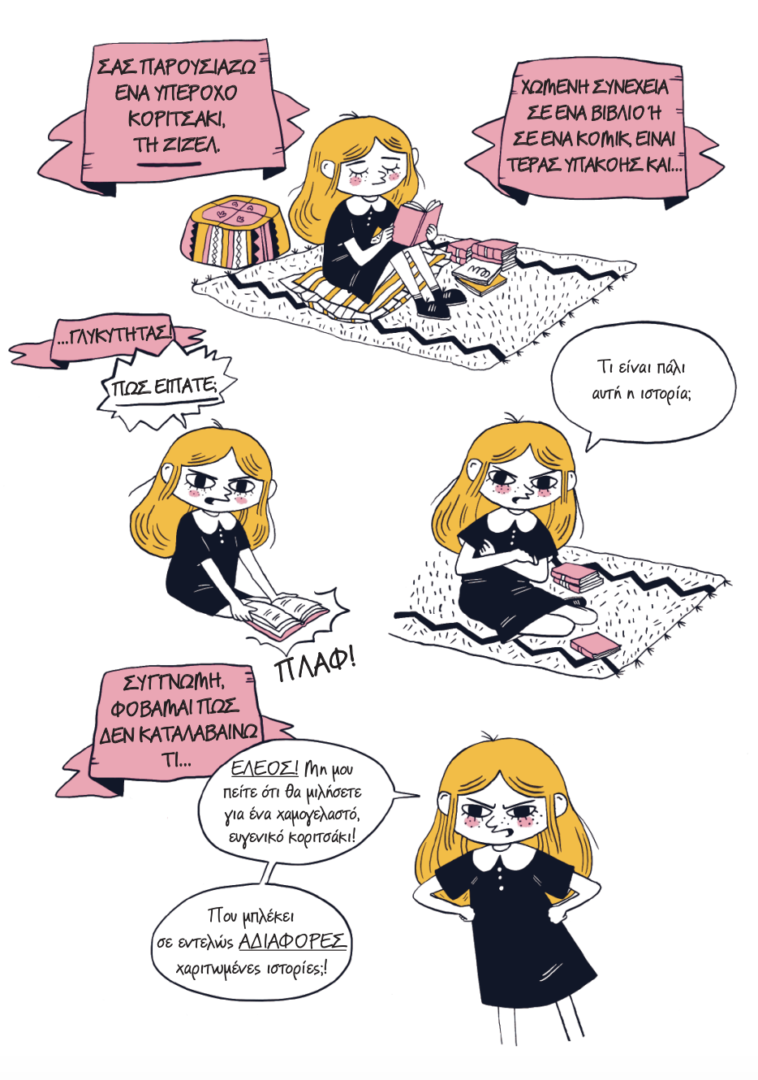 Σ’ αυτό το κόμικ, η μικρή Ζιζέλ μιλάει μέσα από την καρδιά της για θέματα που την προβληματίζουν: την εκπαίδευση των κοριτσιών και των αγοριών, τη συναίνεση, τον Θεό, την περίοδο, τα χρήματα…