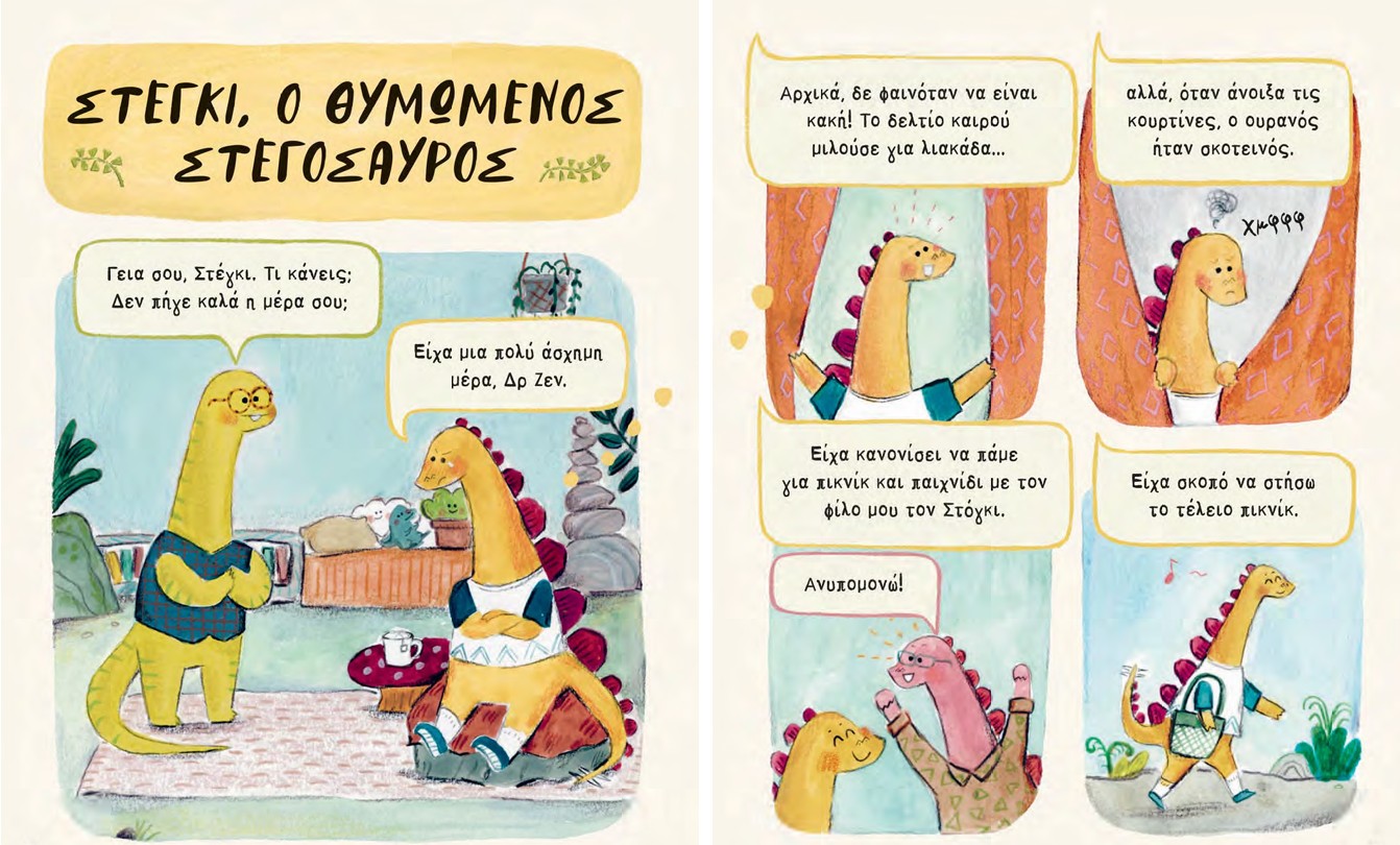 Η συγγραφέας Swapna Haddow και η εικονογράφος Yiting Lee δημιούργησαν μια διασκεδαστική και ανεκτίμητης αξίας συλλογή από ιστορίες δεινοσαύρων με στόχο να διδάξει τα μικρά παιδιά να αντιμετωπίζουν τα συναισθήματά τους.