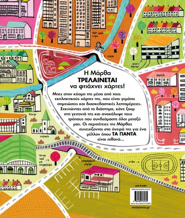 Η Μάρθα τρελαίνεται να φτιάχνει χάρτες! Μπες στον κόσμο της μέσα από τους εκπληκτικούς χάρτες της, που είναι γεμάτοι σημειώσεις και διασκεδαστικές λεπτομέρειες. Ξεκινώντας από το διάστημα, κάνε ζουμ στη γειτονιά της και ανακάλυψε τους τρόπους που συνδεόμαστε όλοι μεταξύ μας. Οι περιπέτειες της Μάρθας συνεχίζονται στα όνειρά της για ένα μέλλον όπου τα πάντα είναι πιθανά.