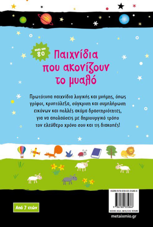 Πρωτότυπα παιχνίδια λογικής και μνήμης, όπως γρίφοι, κρυπτόλεξα, σύγκριση και συμπλήρωση εικόνων και πολλές ακόµα δραστηριότητες, για να απολαύσεις µε δηµιουργικό τρόπο τον ελεύθερο χρόνο σου και τις διακοπές!