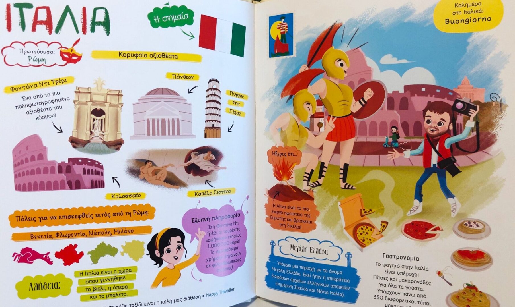 Μέσα στο βιβλίο θα βρεις: – Σημαίες κάθε χώρας – Παραδόσεις – Διάσημα φαγητά από όλο τον κόσμο – Εντυπωσιακά αξιοθέατα και ιστορικά μνημεία