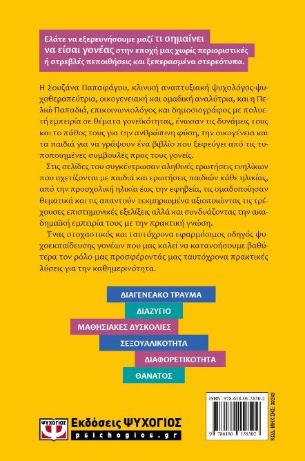 Η Σουζάνα Παπαφάγου, κλινική αναπτυξιακή ψυχολόγος-ψυχοθεραπεύτρια, οικογενειακή και ομαδική αναλύτρια, και η Πελιώ Παπαδιά, επικοινωνιολόγος και δημοσιογράφος με πολυετή εμπειρία σε θέματα γονεϊκότητας, ένωσαν τις δυνάμεις τους και το πάθος τους για την ανθρώπινη φύση, την οικογένεια και τα παιδιά για να γράψουν ένα βιβλίο που ξεφεύγει από τις τυποποιημένες συμβουλές προς τους γονείς.