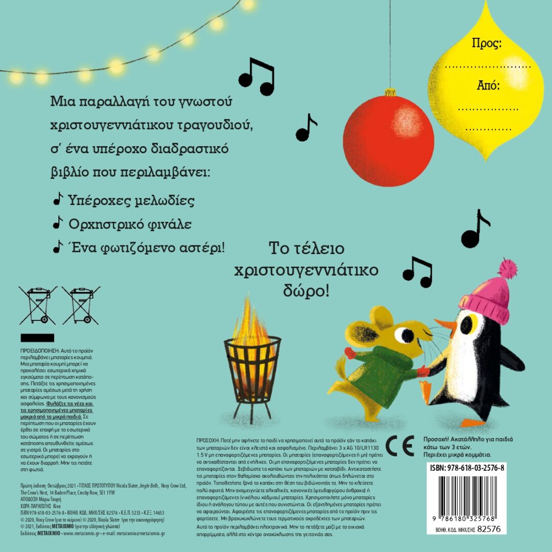 Μια παραλλαγή του γνωστού χριστουγεννιάτικου τραγουδιού, σ’ ένα υπέροχο διαδραστικό βιβλίο που περιλαμβάνει: